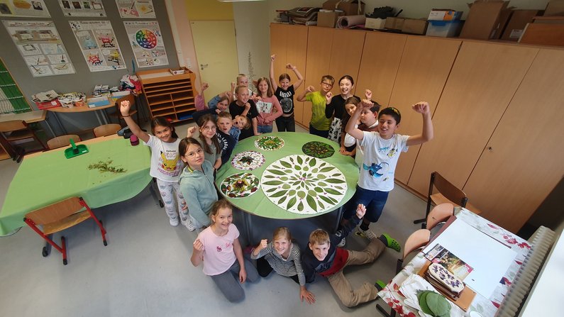 Am Donnerstag, den 30.10.2025 zogen Andrea Schaarschmidt, ehrenamtliche Naturparkmitarbeiterin und Grit Stelzer, Museumsleiterin im Schloss Schlettau, im Zentrum für Wald- und Wildgeschichte die Gewinnerklassen der drei Mitgliedslandkreise. Insgesamt haben in diesem Jahr 28 Klassen beim Naturparkquiz teilgenommen. Den Kreativpreis von 100,00 € vergab die Jury an die Klasse 4a von Grundschule Kleinrückerswalde. Die Schülerinnen und Schüler haben verschiedene Neophyten wie z. B. Kanadische Goldrute, Drüsiges Springkraut, Japanischen Staudenknöterich und Kirschlorbeer gesammelt. Mit den Blüten und Blättern der Pflanzen haben sie in Gruppenarbeit Mandalas gelegt. Alle Kreativ-Einsendungen sind im Zentrum für Wald- und Wildgeschichte im Schloss Schlettau ausgestellt.